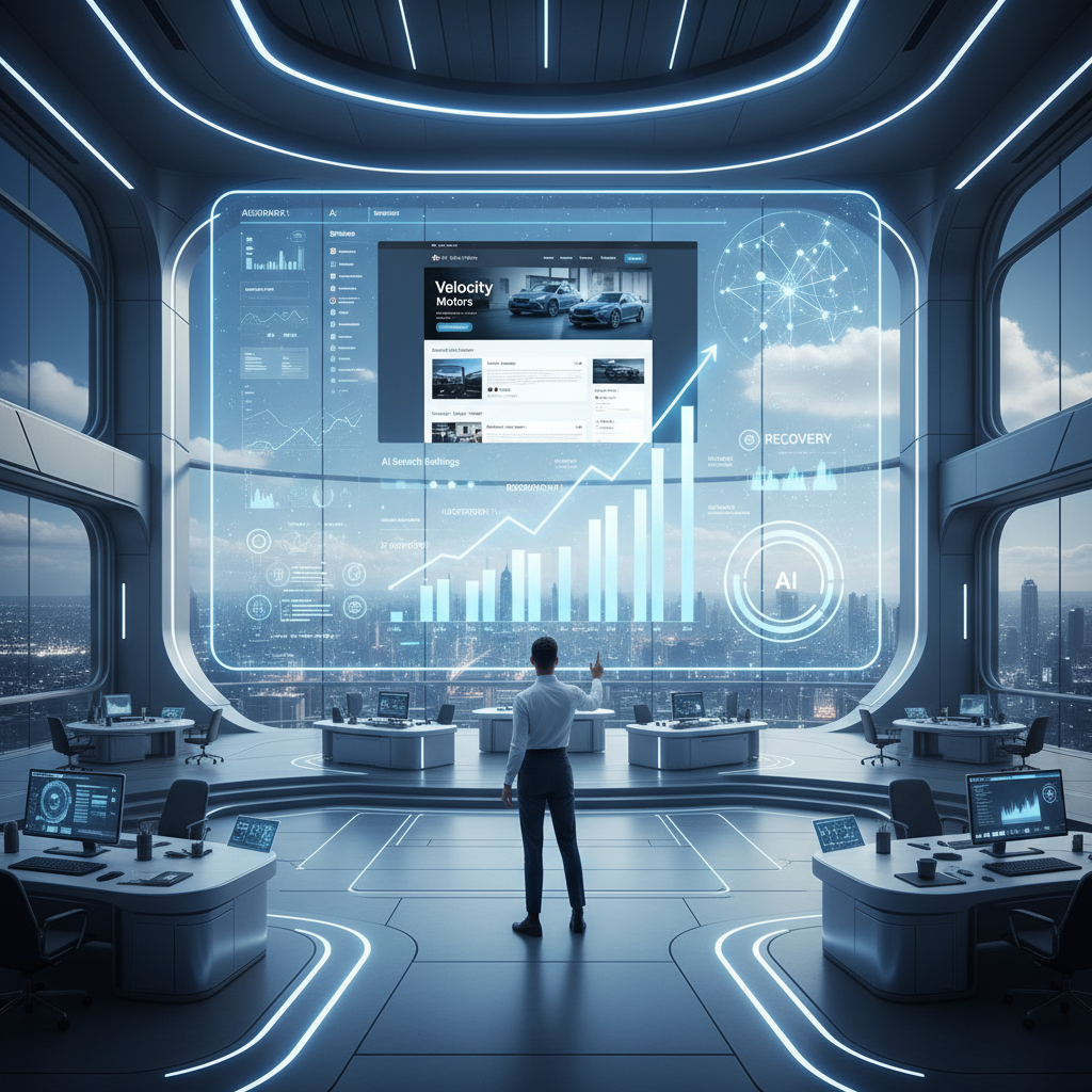 A multi-rooftop automotive group experienced a decline in organic traffic over three months despite maintaining stable ranking positions. Analysis revealed AI Overviews were appearing for their target queries, intercepting user intent before website visits.